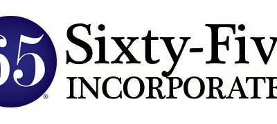 Logo with a blue circle containing the number "65" in white, next to the words "Sixty-Five INCORPORATED" in black text on a white background.