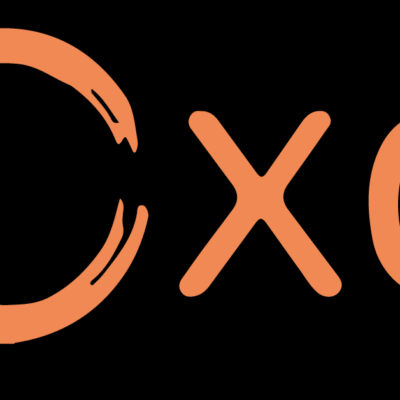 An orange circle, roughly drawn, followed by the lowercase letters "x" and "a" in the same orange color, all on a black background.