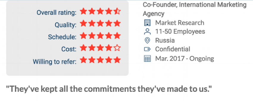 To measure industry expertise, Clutch looks at companies’ websites. For Bear Icebox, it was no issue – Our services, client base, and portfolio of past projects are clear proof that our team is a strong provider when it comes to public relations, social media marketing, content marketing, and more.