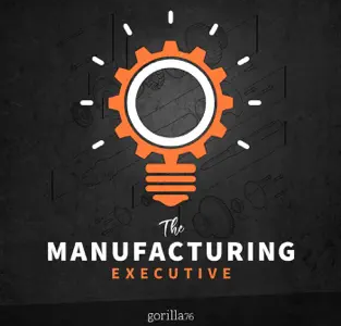 A lightbulb formed by an orange gear and filament appears above the words "The Manufacturing Executive." The background is dark with faint industrial sketches. "gorilla76" is written at the bottom.