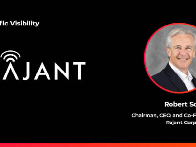 A promotional graphic featuring the Rajant logo and a headshot of Robert Schena, identified as Chairman, CEO, and Co-Founder of Rajant Corporation, with the title "Traffic Visibility" and The Fast Mode logo.