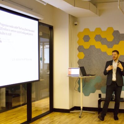 Bob Spoerl, Co-Founder of Public Relations speaking at an event.